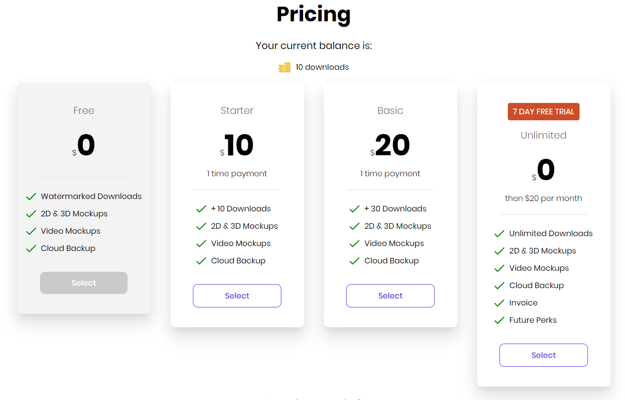 - 2020년 9월 현재 : Unlimited 요금제가 150$ 평생 무제한에서 월 20$ 무제한으로 변경되었습니다.- 2020년 11월 현재: 무료요금제가 다운로드 3회에서 워터마크를 붙이는 방식으로 변경되고,신규사용자는 7일 무제한 사용이 가능하도록 변경되었습니다.